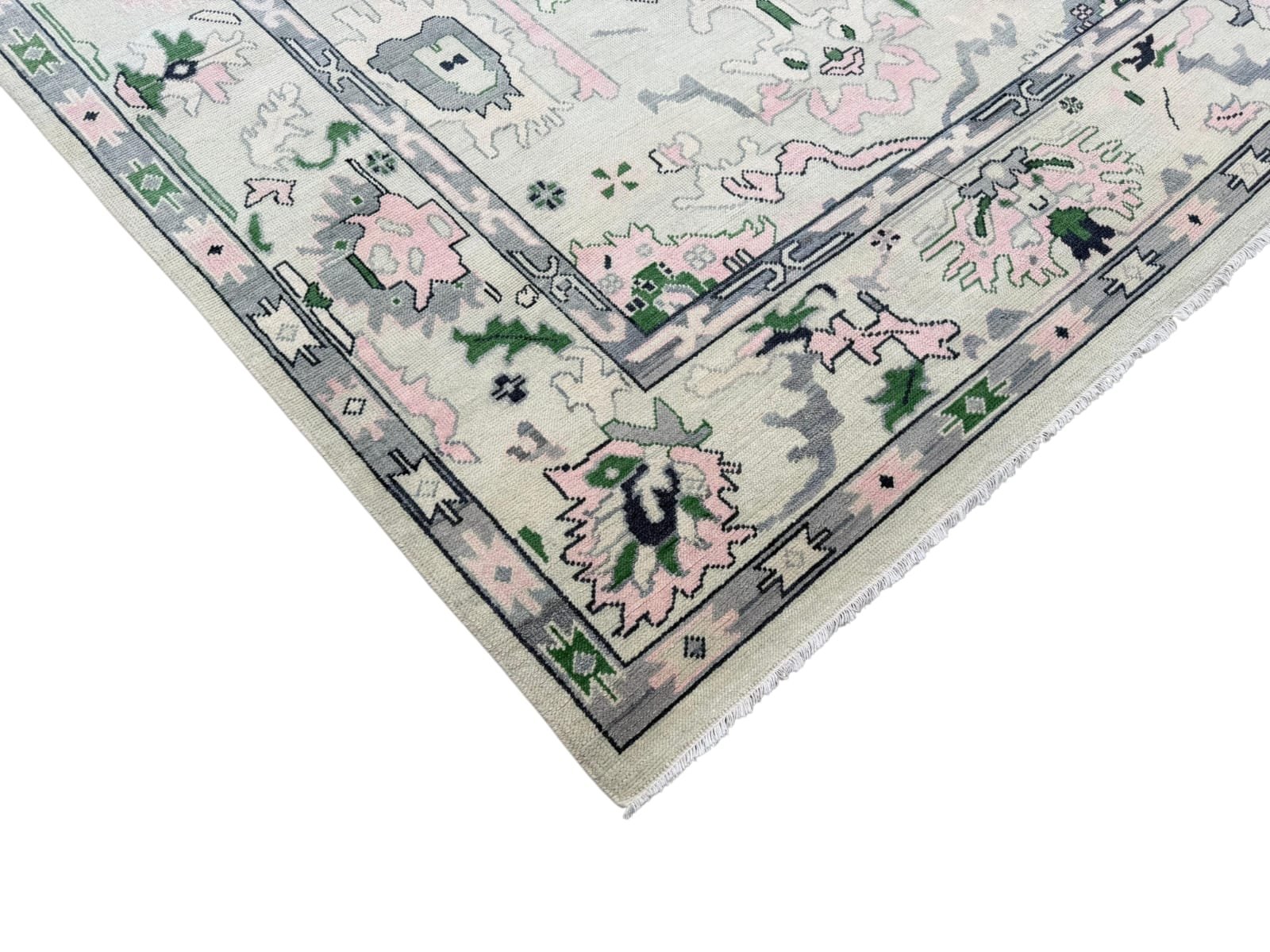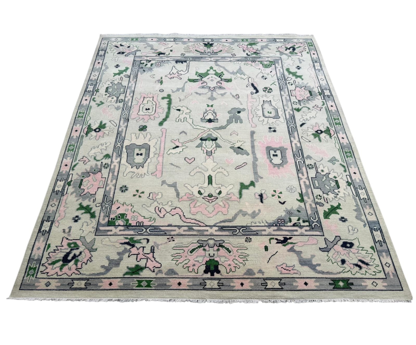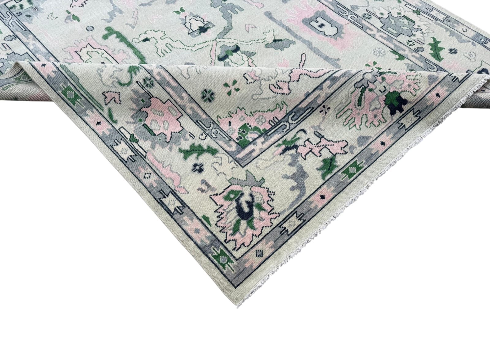Bring subtle elegance to your home with the Emilia Oushak Rug, a beautifully crafted piece inspired by timeless Turkish design. Featuring a soft ivory base with delicate accents of sage green, blush pink, and muted gray, this rug showcases intricate floral and geometric motifs for a refined, sophisticated look. Handwoven for lasting quality and a comfortable feel underfoot, the Emilia Oushak Rug is perfect for living rooms, bedrooms, or dining spaces—effortlessly complementing both modern and traditional interiors while adding a serene, stylish focal point.