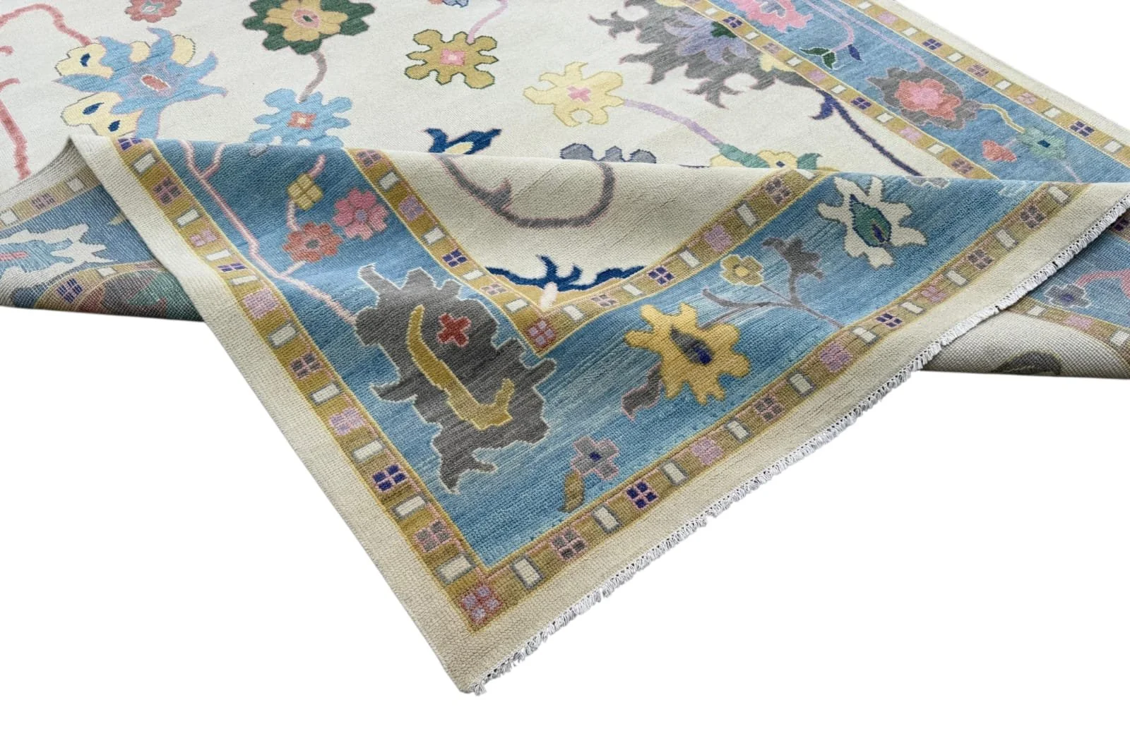 Elevate your home with the timeless charm of the Clara Oushak Rug, a graceful piece inspired by classic Turkish design. Featuring a soft ivory field framed by a refreshing sky-blue border, this rug is adorned with delicate floral motifs in gentle, cheerful tones. Its airy color palette and elegant pattern create a light, inviting feel—perfect for brightening living rooms, bedrooms, or dining spaces. Handwoven for durability and a soft underfoot texture, the Clara Oushak Rug blends vintage sophistication with everyday comfort, making it a beautiful addition to both traditional and modern interiors.